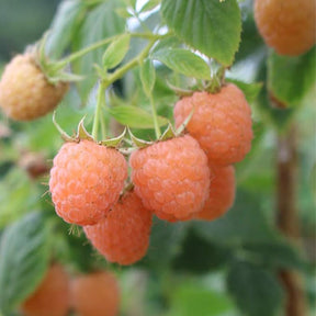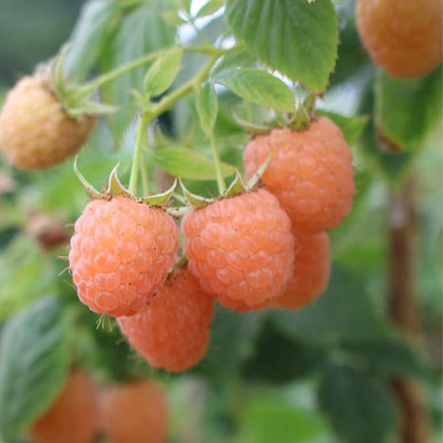 The Double Gold Raspberry Plant is a vigorous shrub with upright stems and plentiful golden berries. The fruit shines in the sun and takes on an attractive golden color when ripe, and is delicious and tart, perfect for fresh consumption. Its flowers are small and white, adding a beautiful ornamental value to the plant. Double Gold Raspberries can not only be eaten directly, but can also be used to make jams, desserts, and ice cream, enriching the family's gourmet options.