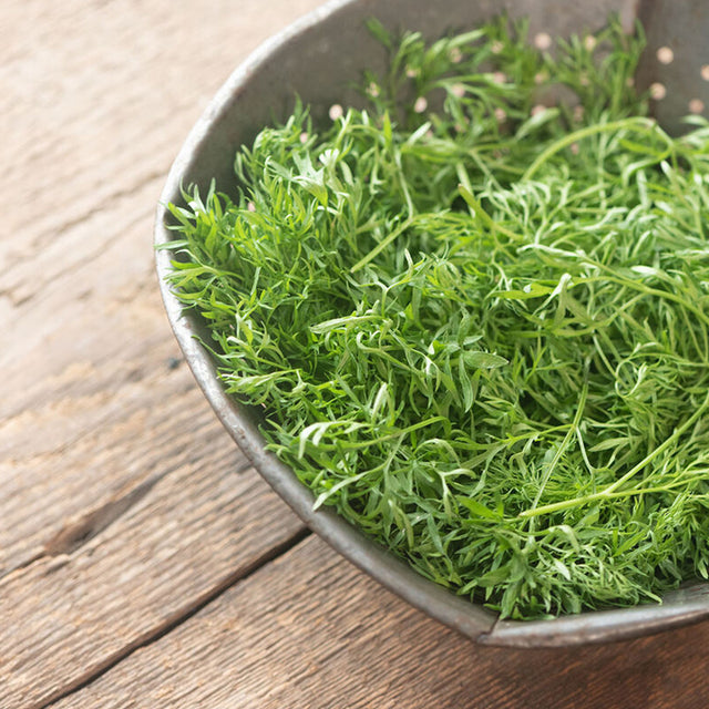 Atractivo cilantro parecido a un helecho, ideal para la producción de hojas tiernas.
