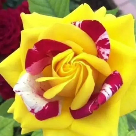 Semillas de rosas abigarradas de color rojo, amarillo y blanco